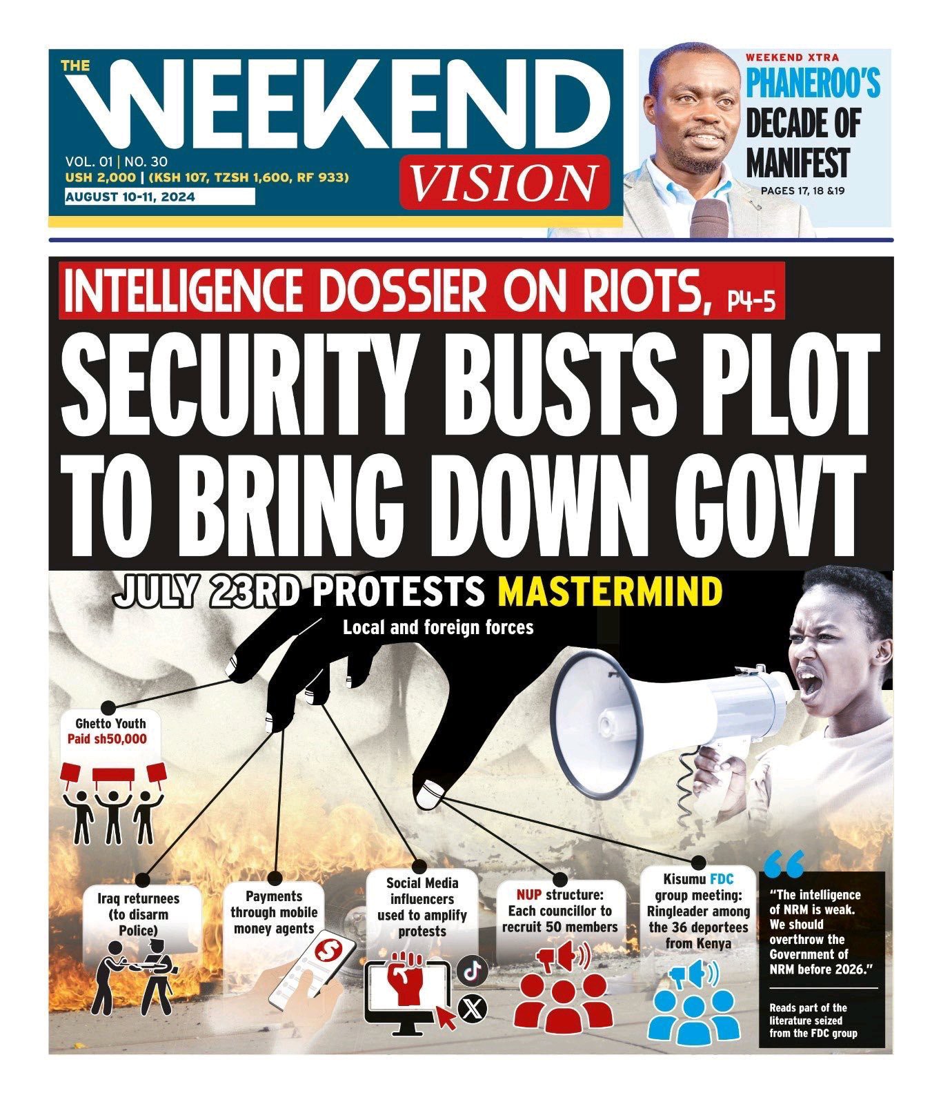 The New Vision newspaper has sparked outrage with its latest splash story, titled “Intelligence dossier on riots: Security busts plot to bring down government”, which claims to expose a mastermind plot to overthrow the government.