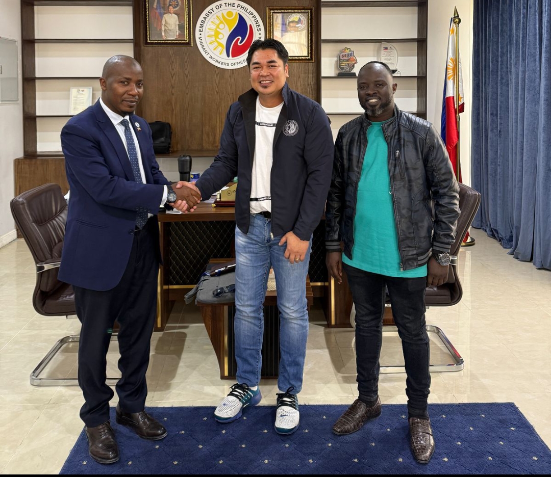 Mr. Kayonde Abdallah, President of Migrant Workers’ Voice and International Director for Ugandan Migrant Workers, along with Mr. Abdulatif Kaloddo, Chief Coordinator for Uganda Labour Companies, conducted a courtesy visit to the Philippines Migrant Workers Office (PMWO) in Riyadh. The delegation met with Mr. Antonio M. Mutuc, JR, the head of the Department of Labor at the PMWO.